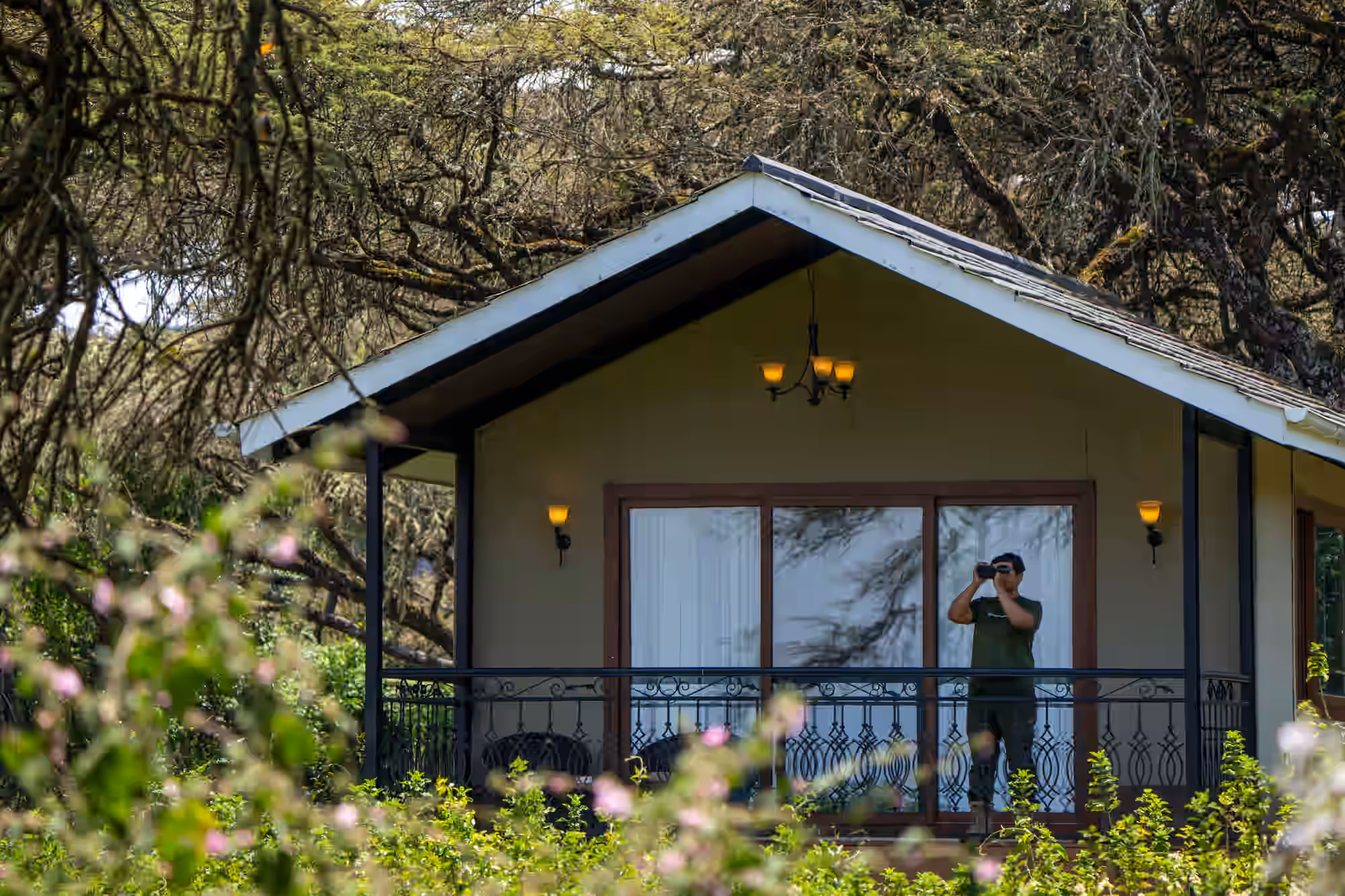 The camp is tucked into the forest for wind protection. While you are on the rim, the views are typically of the beautiful acacia forest rather than the crater floor itself.