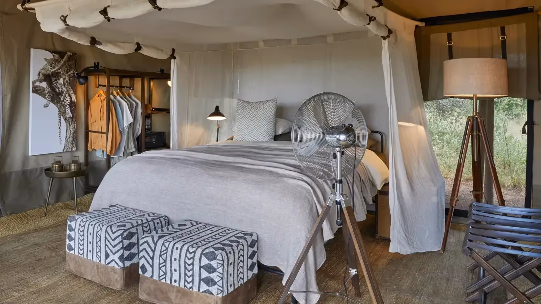 Mila Tented Camp is designed for safari purists who want absolute privacy without sacrificing high-end luxury. The camp’s aesthetic is inspired by the Hadzabe tribe, featuring honey-toned textiles and natural fibers. A standout feature of Mila is that every booking automatically includes a private vehicle and guide, ensuring your safari schedule is 100% customized to your pace.
