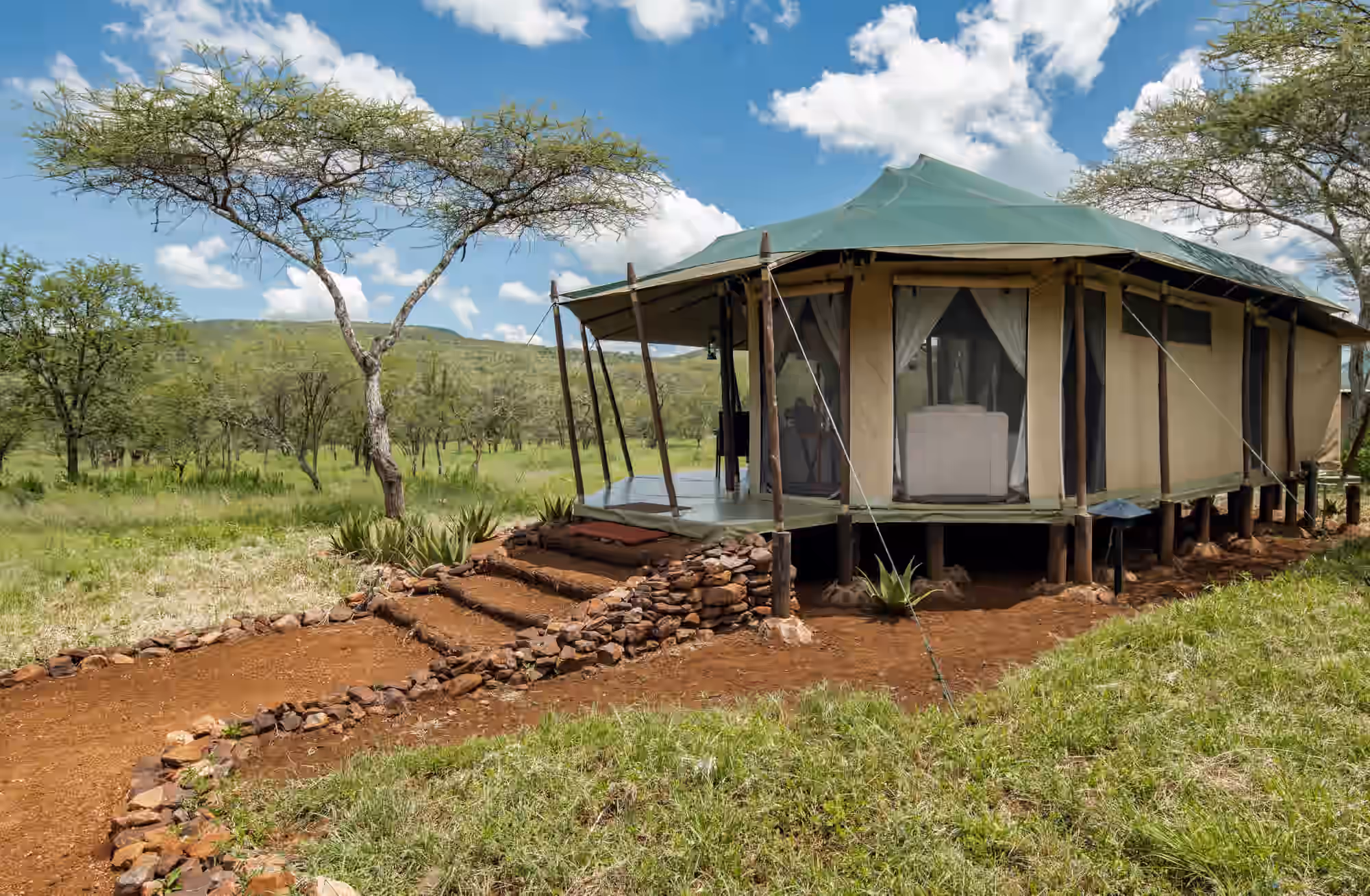 Located in the heart of Mbalageti/Seronera River, near Lake Magadi., offering spectacular views and proximity to premium wildlife viewing areas.