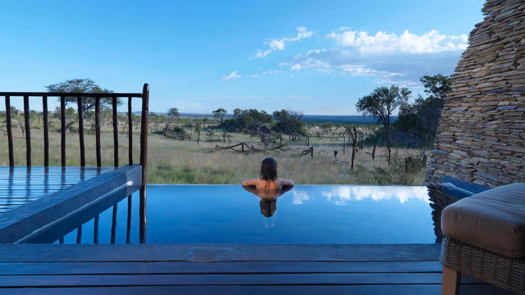 The Four Seasons Serengeti is a sanctuary of deep comfort in one of the world's last great wild places. Unlike many traditional tented camps, this is a large-scale, high-service resort. It is most famous for its free-form infinity pool that overlooks an active elephant watering hole, allowing guests to watch herds drink while they swim. The lodge also features the Discovery Centre, a part-museum, part-interactive gallery dedicated to Serengeti conservation and culture.