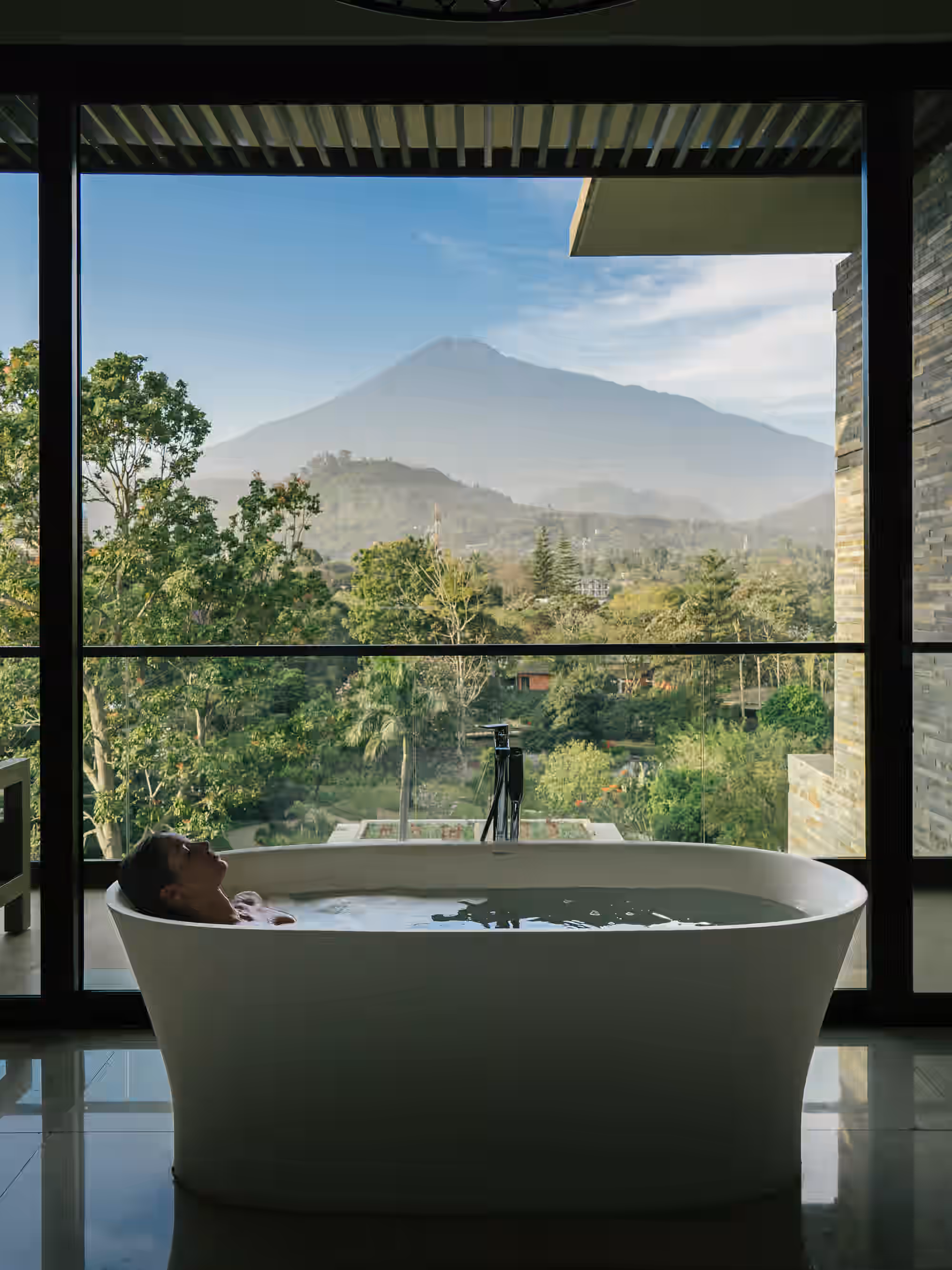 Yes, the hotel is designed for wellness. It features: A state-of-the-art 24-hour fitness center. A luxury spa and wellness center offering massages, a sauna, and a steam room. An outdoor infinity pool with views of the lush gardens and mountains.