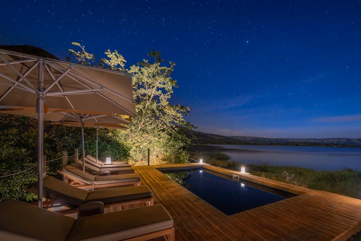 Wilderness Magashi is an intimate, eco-conscious camp designed to blend into the diverse landscape of Akagera. With views over Lake Rwanyakazinga, the camp offers high-end hospitality in one of Africa's most successful conservation stories. Guests can expect a classic East African safari with modern luxury, featuring game drives, boat cruises, and catch-and-release fishing.