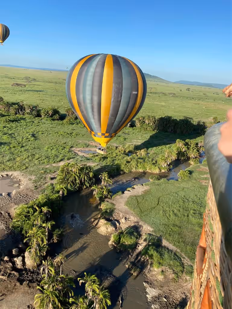 Early mornings on the savannah are surprisingly chilly. We recommend wearing warm, breathable layers (like a fleece or light jacket) that you can remove as the sun gets higher. Closed-toe shoes (hiking boots or sneakers) are essential, as you will be walking through tall grass at the launch and landing sites. A hat is also helpful to protect your head from the heat of the balloon's burners.