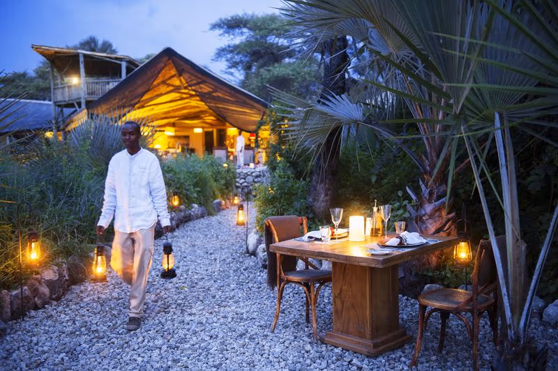 Enjoy the exclusivity of the Grumeti Reserve, where off-road driving and night drives are permitted, allowing for closer wildlife encounters. After a pre-dawn drive tracking lions along the river and a field breakfast, you have the option of a spa treatment at the camp. The afternoon concludes with a signature sundowner setup on a granite kopje, featuring Champagne and canapés. You will then enjoy a three-course bush dinner served by lantern light before a spotlight night drive back to camp.