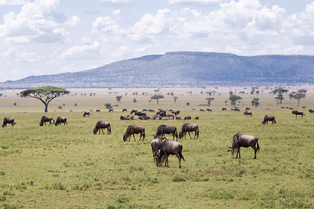 Experience nature at its most raw with a full day dedicated to the calving season, where up to 8,000 wildebeest are born daily. A pre-dawn departure with coffee on the vehicle bonnet allows you to follow morning hunts by cheetahs, lions, and rare wild dogs. You will enjoy a bush picnic at a scenic viewpoint before spending the afternoon exploring deep into predator territories. The day concludes with a star-lit dinner at camp, complemented by your guide's expert storytelling around a roaring campfire.